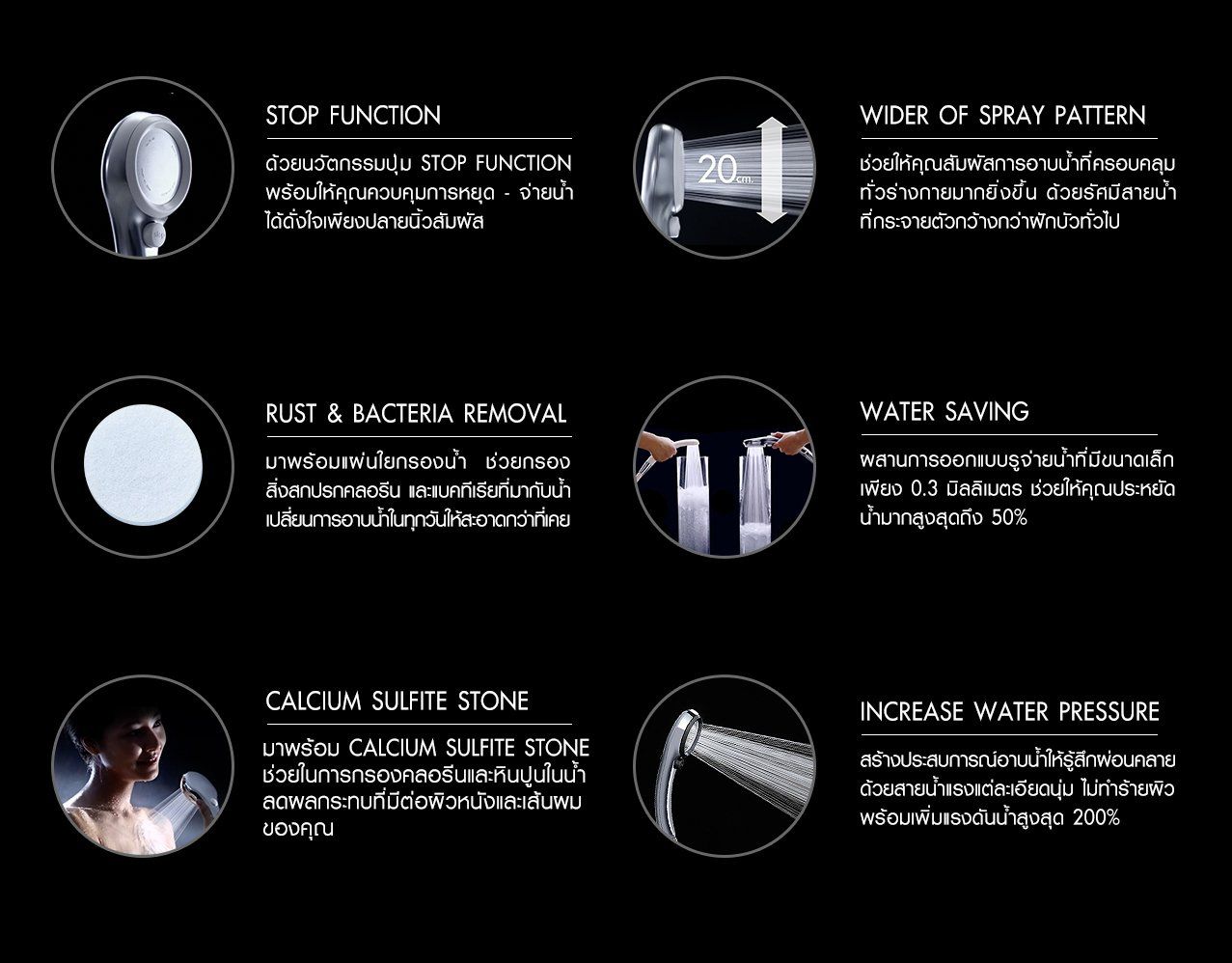 หากท่านกำลังมองหาฝักบัวที่เน้นเรียบหรู และสามารถเพิ่มแรงดันได้ด้วย ขอแนะนำเป็นฝักบัว Seoul Stone Aroma Sense เพราะเป็นฝักบัวที่ออกแบบมาภายใต้คอนเซปต์ "It's Passion, It's not Shower" นี่ไม่ใช่ฝักบัว แต่นี่คือที่สุดแห่งงานดีไซน์ เพื่อความเรียบหรูและเหมาะกับห้องน้ำที่ต้องการงานดีไซน์พรีเมี่ยม วัสดุทำจากพลาสกติก ABS เกรด A ภายในหัวยังมี Micro pad ที่คอยช่วยกรองสิ่งสกปรกที่มากับน้ำด้วย